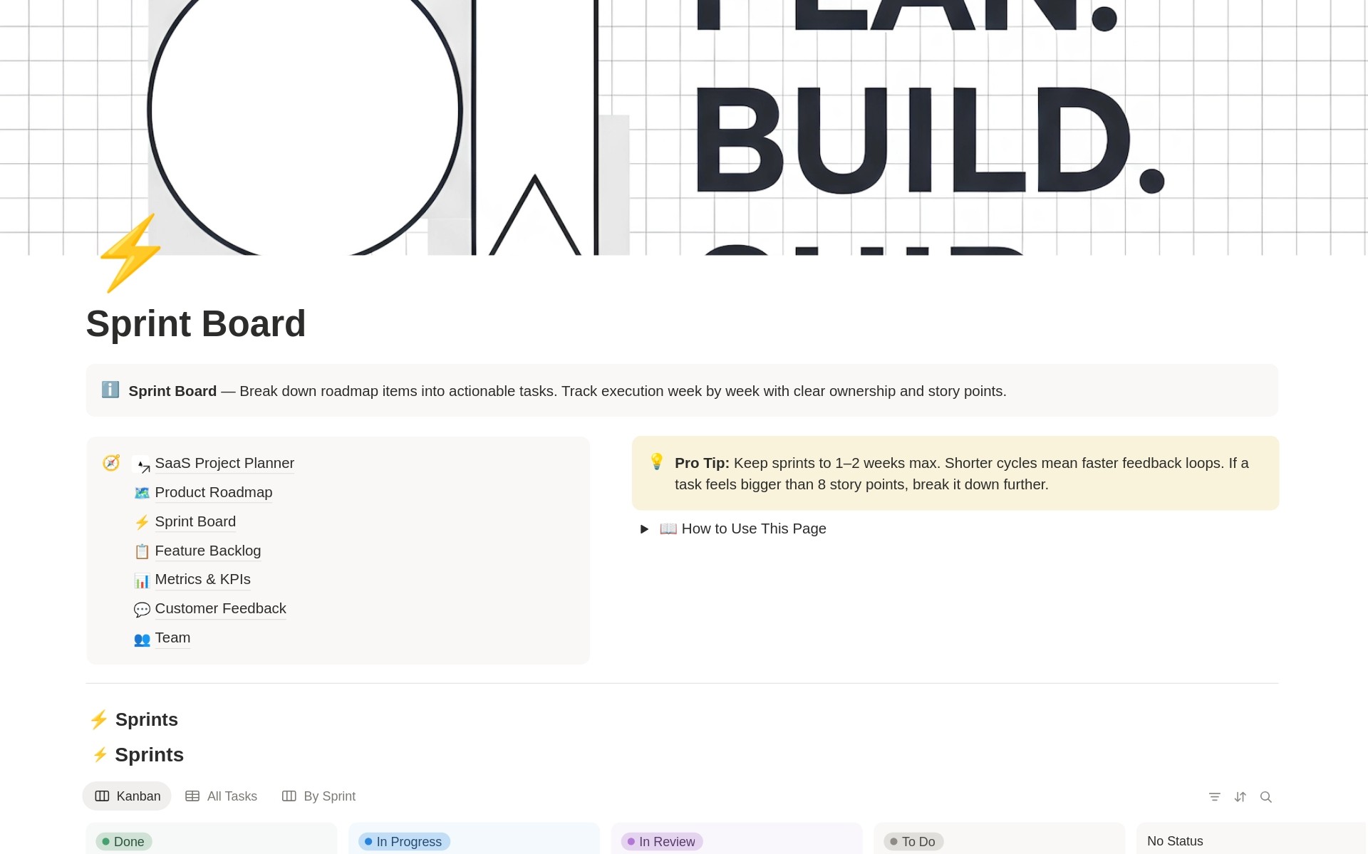 Sprint Board The execution layer breaks down large goals into small tasks. It includes ownership assignment, Story Points for estimation, and a Kanban view. Grouping by sprints prevents team burnout and keeps the scope realistic. It is a practical tool for saas project management.